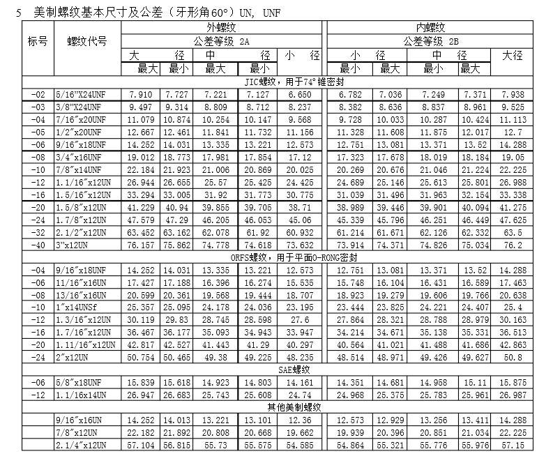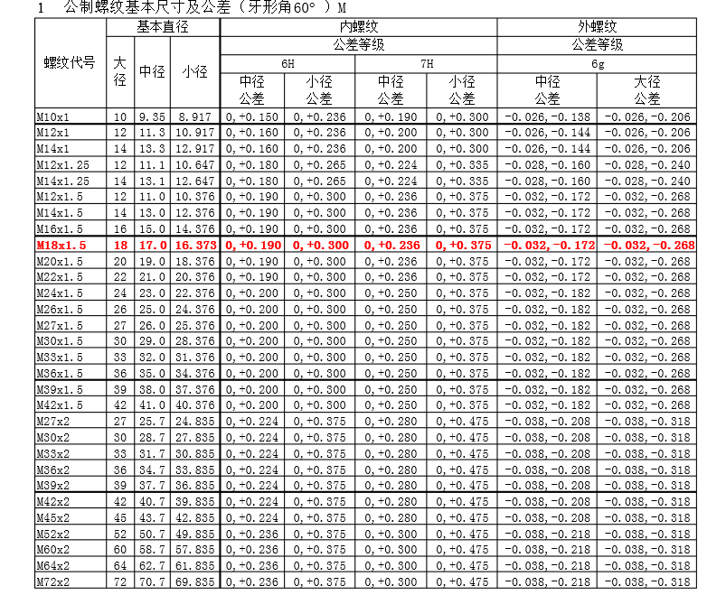 螺纹规格